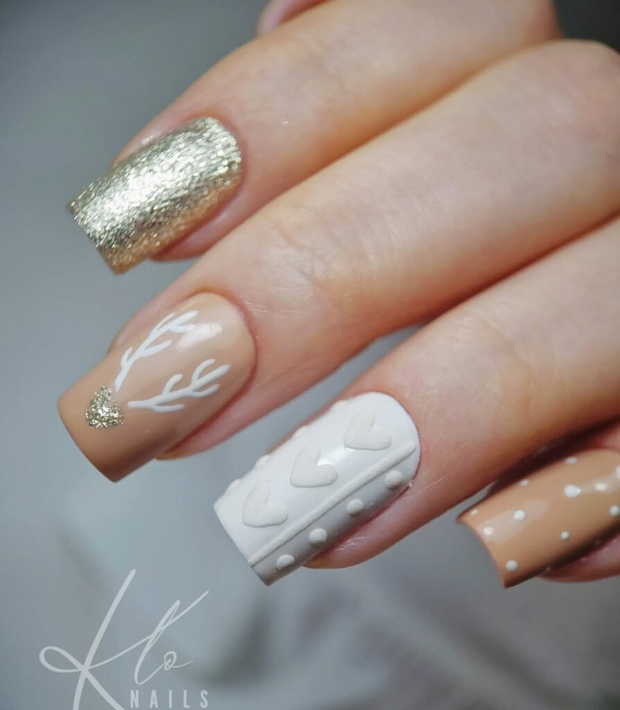 The rest of the nails can stay neutral with a simple brown or beige color, making the reindeer accent stand out.